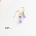 d225-71【平常心を保つ 天然石 アイオライト】と【ビオラ】ドロップのアレンジピアス(パーツ変更可能)