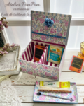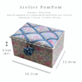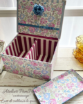 その魅力を引き立てるようリボン付きの蓋とタッセルそして共布で仕立てたトレイをセットにした小さなふた付きボックスです。