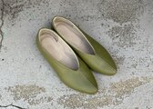 装いに差し色を。歩きやすいレディースVカットパンプス|新色オリーブグリーン登場