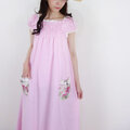 [予約販売] 花咲くポケットとピンクのダブルガーゼ・シャーリングマキシワンピース