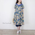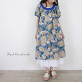 [予約販売] ブルームブーケ・レースヨークの綿麻パフスリーブワンピース