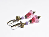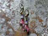 エンジェルトランペットの様なドイツヴィンテージビーズとクォーツ&アメジストのピアス