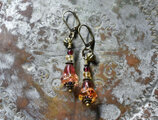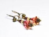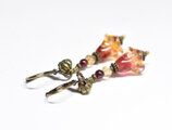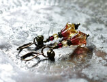 エンジェルトランペットの様なドイツヴィンテージビーズとシトリン&ガーネットなどを繋いだピアスです。