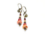 エンジェルトランペットの様なドイツヴィンテージビーズとシトリン&ガーネットのピアス(イエロー×サーモンピンク)
