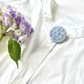 "shito shito" 雨の季節を祝う 青紫の刺繍丸型ブローチ