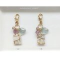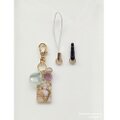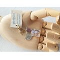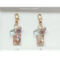 ゴールドラインのペイントが施されたシェルに、葉っぱの形のアメジスト、グレーアゲート、チェコガラスを繋げたチャームです。