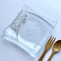「層雲-茜-」茜色のラインがポイントの白色とマーブルの四角いシンプルなガラスのお皿 豆皿ガラスのお香立て用のお皿に購入しました。大きさも丁度よくデザインもシンプルで素敵なお皿でした。梱包もとても丁寧でした。ありがとうございました。大切に使わせていただきます。