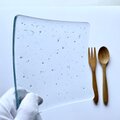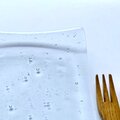 ◎ラムネのビンのような爽やかな色のガラスの中に、炭酸のシュワシュワした大小さまざまなな気泡を閉じ込めたガラスのお皿です。