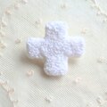お洋服の他にも、布バッグ、リュックサック、マフラー、ストール、帽子などにつけても可愛いと思います。