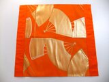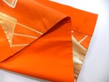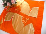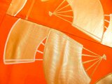 オレンジ地に金糸の扇文様です。無地部分は中無地(絹)を使用しています。