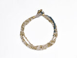 琥珀&クリアシードビーズとインディゴブルービーズの4連ブレス(インド花ブラス留め金)
