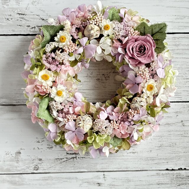 花材・・・バラ、アジサイ、カスミソウ (プリザーブドフラワー)