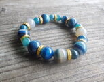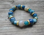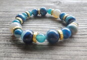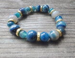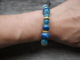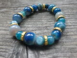 海色の12ミリと8ミリのアゲート(瑪瑙j)玉を交互に配置しゴールドのスペイサーを散りばめました。