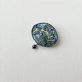 ビーズは、一色の明るさのあるつるりとした青いガラスビーズを使いました。楕円形型のブローチです。