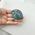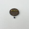 刺繍面は、草木染め糸の味わいを感じられるブローチになりました。全体は藍と小鮒草を使い染められたグリーンでデザインしています。とても素敵なグリーンです。少しずつ藍染の青を組み合わせています。また細い金糸も使いアクセントに使い、上品な輝きを加えています。