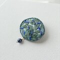 "Aominaduki" 青水無月 青緑 草木染め糸を使った刺繍オーバル型ブローチ