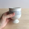 呉須でヘリンボーン柄に絵付けをした白土製の脚付きカップです。