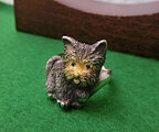ヨークシャテリアのリング(ブラックダイヤモンドの瞳)・シルバー製/日本製