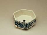陶製 高さ40mm 直径80〜90mm 重さ122g 白土に呉須で色付けしてます。鉢の内側も釉薬が掛かってます