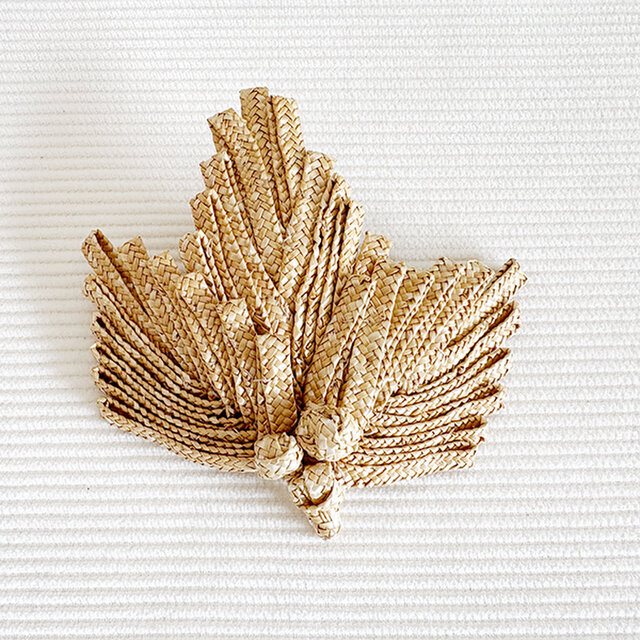 モットルという天然の麦素材のブレードでブローチを作りました。いつもの帽子、洋服、鞄などを夏らしい装いにしてくれます。麦の懐かしい香りと年数を経て色が濃くなる変化をお楽しみください。