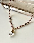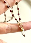 水晶トップのガーネットとスモーキークォーツのRネックレス