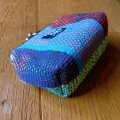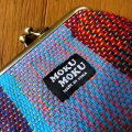 工房で働く利用者さんが自分で使う糸を選び、時間をかけて丁寧に織り上げた「さをり織」のがま口ポーチです。