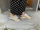 【限定新色】オールレザー・メタリックスニーカー(ゴールド×カーキ)