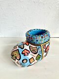ガラスタイル付き猫柄ブーツプランターオブジェ手作り