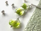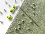 エメラルドグリーンのおはじき型とんぼ玉を3連にしてかんざしを制作しました。