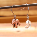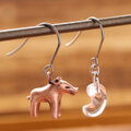 古墳時代の猪形埴輪と水晶の勾玉のペア フック式ピアスです。