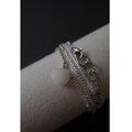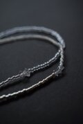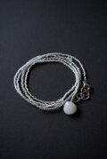 *3種類のガラスビーズをハーキマークォーツと組み合わせ、ドイツ製絹糸で柔らかく仕上げたアクセサリーです。中央の天然石アラゴナイトがシルバーカラーと調和し、ブレスレットとしても使用できるよう長さを調整しております。凛とした清々しい大人のアクセサリーです。