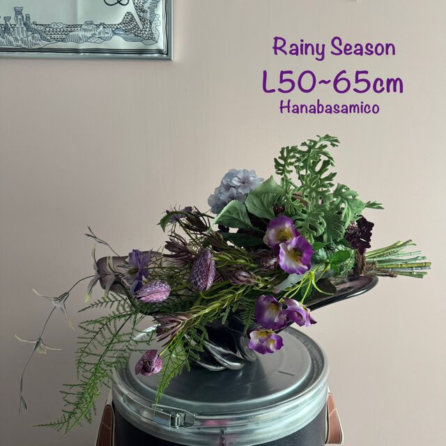 《サマーギフトにも》丁度いい60cm!エレガントな紫陽花やニゲラが作る梅雨の季節にぴったりなブーケスワッグ