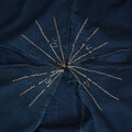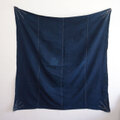 刺し子の縫い目が静かに浮かび上がり、中央にはつぎはぎのリペアが重なる、深い藍の風呂敷。