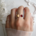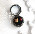 ルビーは深いレッドピンクカラーにつるんとした表面が何とも可愛く、光に当たるとキラキラと輝きます。