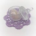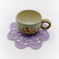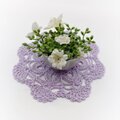 光沢のあるレース糸で編んだ、お花のドイリーです。