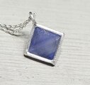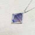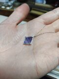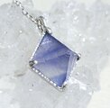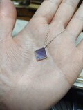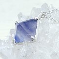 コバルトブルーとカラーレスの縞々がとても綺麗なフローライトピラミッド*透明感に優れたニューメキシコ州産フローライトのシルバーペンダントです*白熱灯光では紫色にカラーチェンジします*フローライトは劈開方向がハッキリしているため金具の差し込み接着では力が加わった際に割れてしまう可能性が極めて高いのでそれぞれの形状に合わせた石枠を製作しております*裏面は平面のピラミッド形状、劈開面特有の質感をお楽しみ下さい*通常、黒化遅延処理を施しますが銀そのものの変化をお好みの場合は処理不要とお申し付けください*黒化防止ロジウムコーティング(最終画像下段色味参照)ご希望の場合はチェーンとともに承ります(別途1200円)925チェーン1.3㎜40㎝・長さのご希望がございましたら承ります*
