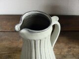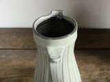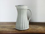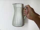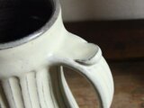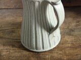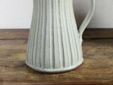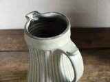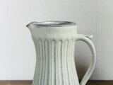 素地に「しのぎ」を施し白い化粧泥を掛けてから蘭越釉を掛けて焼成しています。