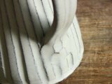 ●ハンドル(持ち手)をボディに接着し親指をのせるところを付けます。(接着には粘土をクリーム状に溶いたものを使用))