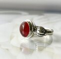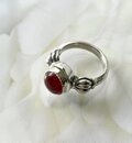 美しい赤橙色を持つカーネリアンを使用し、王冠をイメージしたデザインに仕上げました。
