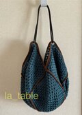 メインのモチーフを編む糸は、上質でツヤのある藍色のリネンヤーンです。
