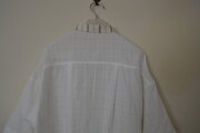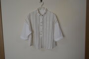 小さめ仕立ての衿がポイントのバイカラー五分袖シャツです。