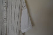 ストライプのコットンリネン生地&白のWガーゼ生地で作りました