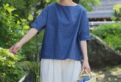 ・ボトムスを選ばず、流行に左右されないシンプルなブラウス。