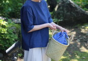 新潟の亀田縞で仕立てた、さらりと涼しい五分袖のブラウス。