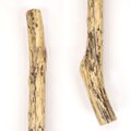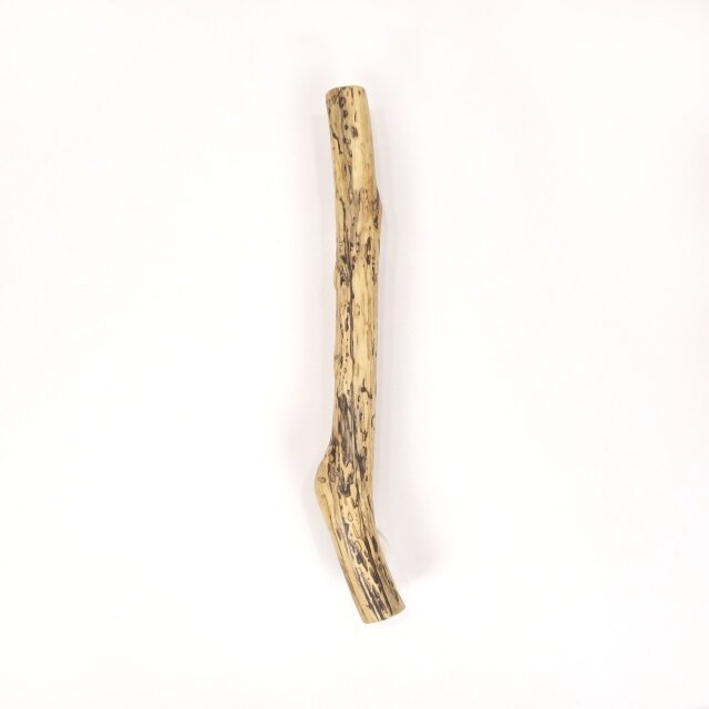 側面にふくらむ大きな木の節、そこから方向転換し、その後比較的まっすぐに伸びた枝の流木です。