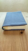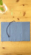 表地は少しくすんだ青色で、やや粗めのさらりとした手触りの布です。湿気の多い季節でも、快適に読書していただけます。