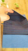 裏地は 黒に近い紫色で 数種類の糸で刺し子をしています。