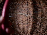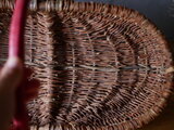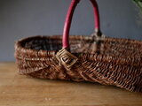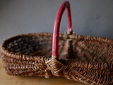 赤茶色の枝に、赤いテーピングが目を引くアンティークパニエです。