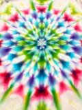 全て染色されるタイダイ染め、絞り染めの作品群。