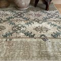 68.5×98 ベージュボタニカル パッチワーク トルコヴィンテージラグ